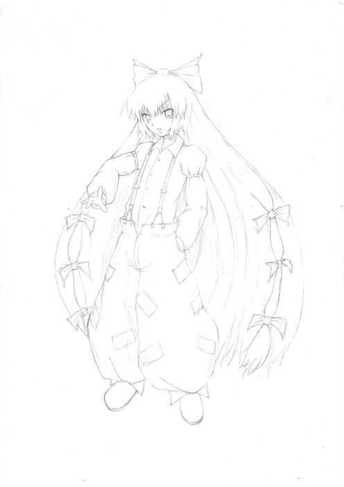 んで、文字だけではなんなので今描いてるえの線画をば、